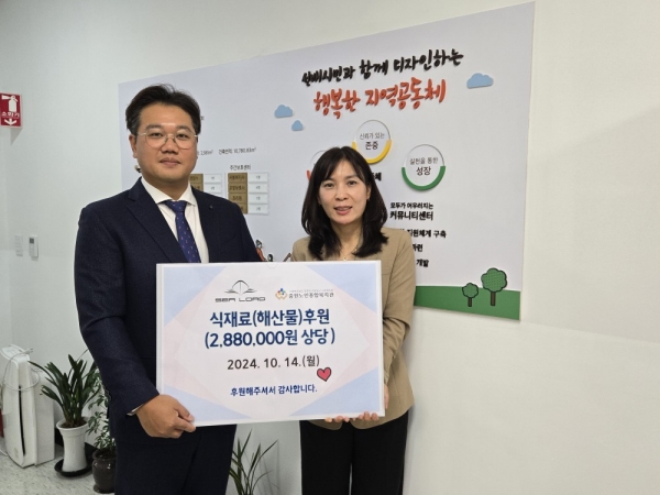 [광성일보] 성남시 중원노인종합복지관(관장 신명희)은 10월 14일(월) 주식회사 씨로드와 함께하는 식재료 후원 전달식을” 진행하였다. 이날 전달식에는 (주)씨로드 최성일 대표가 참석하였으며 식재료 2,880,000원 상당의 해산물을 중원노인종합복지관을 통해 후원하였다. 이날 받은 식재료는 복지관 경로식당을 이용하는 회원들에게 양질의 식단으로 제공하기로 하였다.