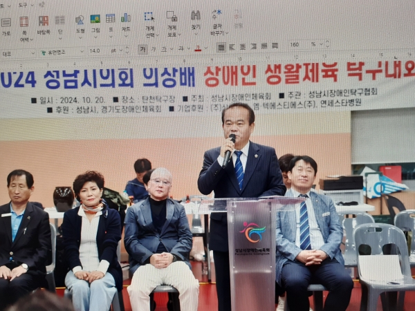 [광성일보] 성남시의회 이덕수 의장, 민영미 의원이 20일 탄천종합운동장 내 탄천탁구장에서 개최된 ‘2024 성남시의회 의장배 장애인 생활체육 탁구대회’에 참석했다.