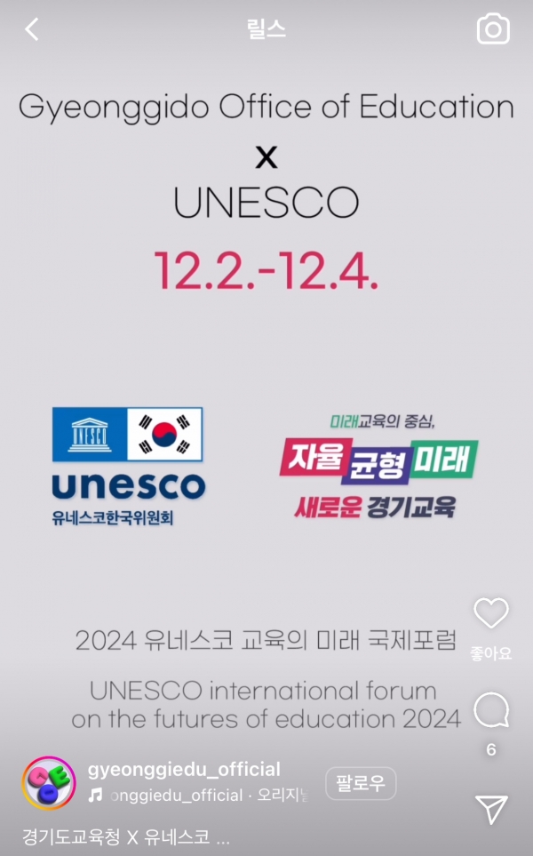경기도교육청(교육감 임태희)이 오는 12월 2일부터 4일까지 열리는 ‘2024 유네스코 교육의 미래 국제포럼’을 40일 앞두고 디데이(D-Day) 영상을 추가 공개했다.