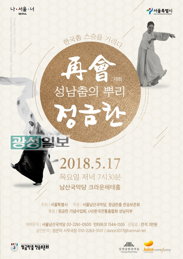 스승의 날 주간을 맞이하여 서울특별시 주최, 서울남산국악당과 정금란춤 전승보존회가 주관하는 <한국춤 스승을 기리다 : 재회(再會) 성남춤의 뿌리 정금란> 공연이, 오는 17일 저녁 7시 30분 서울 필동 서울남산국악당 크라운해태홀에서 펼쳐진다.