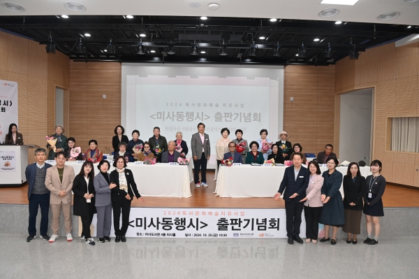 ‘미사동행시’는 ‘아름다운 사람들이 예술 활동을 함께하며 행복을 이뤄가는 시간’이라는 의미를 담은 치매예방형 문화예술 치유 사업으로, 다양한 문화예술 체험 기회를 제공하고 있다.하남시치매안심센터가 치매 고위험군 어르신을 사업 참여 대상자로 선정하면, 미사도서관에서 프로그램을 진행하는 협업 방식으로 운영된다.올해는 기존 수업 장소인 미사도서관에 더해 원도심에 위치한 신장도서관에서도 수업을 진행할 수 있도록 사업을 확대하며 어르신들의 접근 편의성을 높였다.이날 진행된 미사동행시 시화집 출판기념회는 미사동행시 사업에 참여한 어르신들이 작품 활동을 통해 완성한 시(詩)와 그림을 대중에게 소개하기 위해 마련됐다.