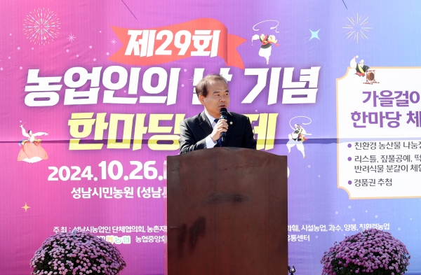 [광성일보] 성남시의회 이덕수 의장이 지난 26일 성남시민농원에서 개최된 제29회 농업인의 날 기념 한마당축제에 참석했다.이덕수 의장은 “농업의 경쟁력을 확보하기 위해서는 우선적으로 현장 농업인들의 목소리에 귀를 기울이는 것이 매우 중요하다.”라며, “농업인들의 헌신에 언제나 감사드린다.”라고 말했다.