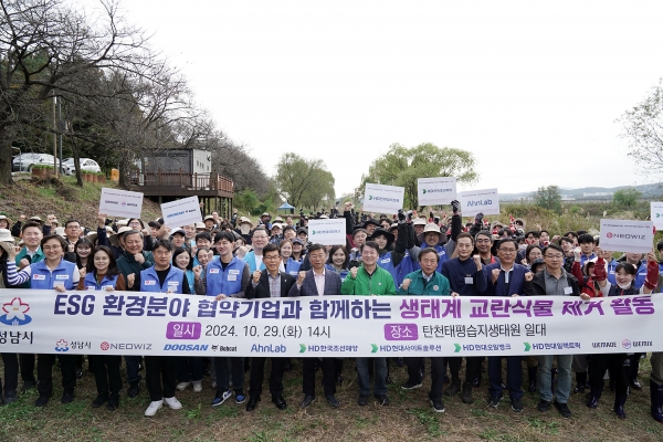 신상진 성남시장과 시 공무원, ESG 환경 분야 협업 기업인 ㈜네오위즈홀딩스, 두산밥캣㈜, ㈜안랩, ㈜위메이드, HD한국조선해양, HD현대사이트솔루션, HD현대오일뱅크, HD현대일렉트릭의 임직원 등 모두 250여 명이 생태계 교란 식물 제거에 참여했다.2만7600㎡ 규모 탄천 태평습지생태원 일대에서 환삼덩굴, 가시박, 단풍잎돼지풀을 뽑아 없애는 작업이 이뤄졌다.뽑아낸 생태계 교란 식물은 소각 처리했다.