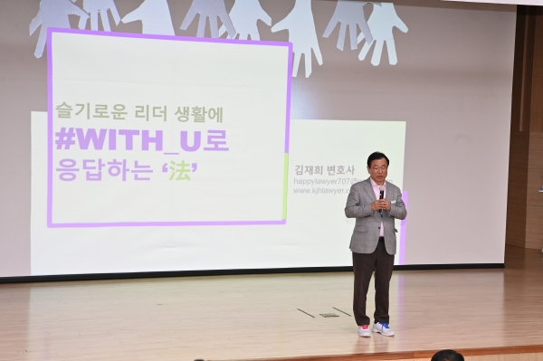 강연에 나선 김재희 김재희법률사무소 대표 변호사는 ‘슬기로운 리더 생활에 위드유(WITH U)로 응답하는 법(法)’을 주제로 ▲성희롱·성폭력 관련 법률 및 사례 분석 ▲2차 피해 예방 ▲신종 범죄 예방을 위한 인식 변화 등 고위직 공무원이 가져야 할 책임과 역할을 강조하는 내용으로 강연을 펼쳤다.특히 이날 김재희 변호사는 젠더 법률전문가로서 젠더 이슈를 알기 쉽게 설명하는 한편, 고위직 공무원들이 4대 폭력에 대해 정확히 인식해 이를 예방하고 실천할 수 있도록 강연을 구성해 호평을 받았다.