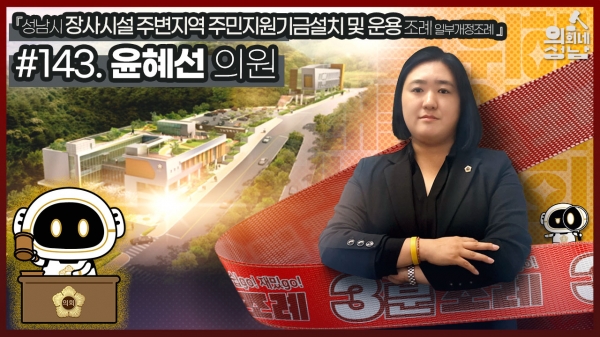 [광성일보] 성남시의회는 ‘3분 조례-윤혜선 의원 편’ 영상을 시의회 공식 SNS에 게시했다.이번에 소개된 조례는 윤혜선 의원 등 12명이 발의한 ‘성남시 장사시설 주변지역 주민지원기금설치 및 운용 조례’이다.