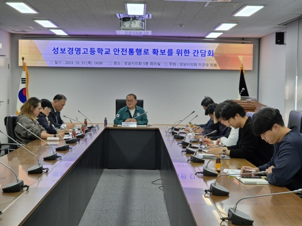 이군수 시의원(신흥2‧3동·단대동, 더불어민주당)은 31일 목요일 성남시의회 5층 회의실에서 성보경영고등학등학교 안전통학로 확보를 위한 간담회를 개최하였다.