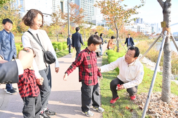 [광성일보] 하남시(시장 이현재)는 4일 미사호수공원(망월천 호수부·하류부)에서 시민 300명이 참석한 가운데 왕벚나무 600여본에 비료를 주는 ‘내 나무 비료 주기’ 행사를 진행했다.‘내 나무 비료 주기’는 시민들이 지난 2023·2024년 미사호수공원 벚꽃길에 직접 애칭 명찰을 달아주며 정성껏 식재한 왕벚나무의 수목생장을 돕기 위해 진행한 시민참여형 공원녹지 프로그램이다.앞서 하남시는 시민들과 함께 미사호수공원 호수부 주변에 왕벚나무 600여주에 명찰달기 행사를 진행했는데, 이후 시민들이 애칭을 붙여준 나무가 잘 자라고 있는지에 대한 문의가 쇄도했다.