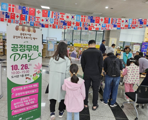 중원도서관은 이번 캠페인의 일환으로 공정무역 제품을 활용한 체험과 전시 프로그램을 기획했다.앞서 지난달 26일 중원도서관은 ▲코끼리똥 종이 액자 만들기 ▲마스코바도 달고나 체험 ▲공정무역 팔찌 제작 ▲슬라이딩 퍼즐·빙고게임 등 행사를 진행하며 참가자들이 공정무역 제품을 만나볼 수 있는 자리를 마련했다.아울러 공정무역 제품 관람과 시식의 기회를 통해 시민들이 공정무역을 쉽게 접할 수 있도록 했다.