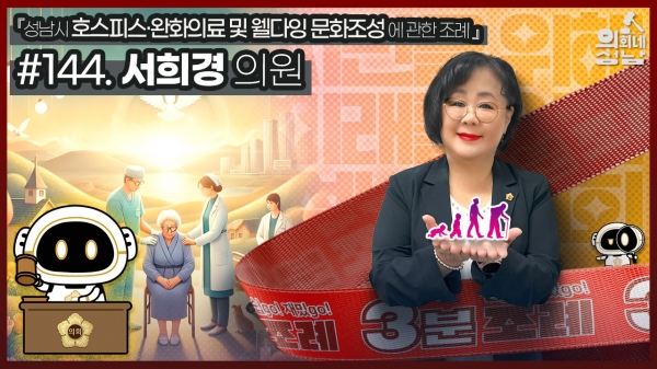[광성일보] 성남시의회는 ‘3분 조례-서희경 의원 편’ 영상을 시의회 공식 SNS에 게시했다.이번에 소개된 조례는 서희경 의원 등 14명이 발의한 ‘성남시 호스피스·완화의료 및 웰다잉(Well-Dying) 문화조성에 관한 조례 전부개정조례’이다.