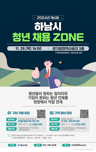 하남시, ‘2024년 제4회 청년 채용 ZONE’ 기업·청년 모집