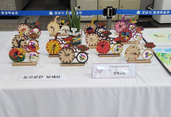 로비에는 장애인 학습자들의 작품 137점을 전시한다. 도자기 예술, 민화, 원예, 꽃꽂이 등 다양한 작품을 만날 수 있다. 성남시는 지난해 3월 10일 장애인평생학습도시로 지정됐다.‘배움이 희망으로, 함께 누리는 평생학습도시 성남’을 강령으로 지난해 1억8000만원(국비 9000만원 포함), 올해 2억2000만원(국비 1억2000만원 포함)을 각각 투입해 장애인 역량 개발을 위한 프로그램을 다각화하고 있다.