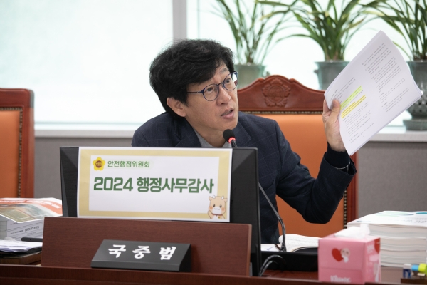 [광성일보] 경기도의회 안전행정위원회 국중범 의원(더불어민주당, 성남4)이 중앙정부 의 의료대란 대응을 위한 지자체 재난관리기금을 투입 요구를 강한 어조로 비판했다.이 이슈는 지난 18일(월) 도 재난관리기금을 담당하는 안전관리실을 대상으로 진행된 행정사무감사 과정에서 본격적으로 불거졌다. 국중범 의원은 “최근 보건복지부가 지자체의 재난관리기금을 의료대란 소요재원으로 사용한다는 소식을 접했다”며, “현재 의료대란으로 인해 건보재정을 2조 넘게 투입하고, 이것도 모자라 예비비를 2천억 넘게 지출한 걸로 알고 있는데 그것마저도 모자라 지자체 재원까지 끌어들여 이 사태에 대응하고 있다는게 정상적인 일이냐”고 강하게 질타했다.