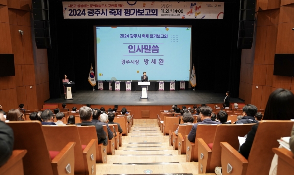 [광성일보] 광주시는 21일 남한산성 아트홀 소극장에서 시민과 상생하는 문화예술도시 구현과 지역축제 발전을 도모하기 위해 ‘2024 광주시 축제 평가보고회’를 열었다.이날 보고회에는 방세환 시장을 비롯해 시 유관부서, 광주시 문화재단, 축제별 운영위원회, 시의원 및 축제에 관심 있는 시민들이 참석한 가운데 축제 하이라이트 영상 시청, 각 축제 별 성과 보고, 발전 방안 토론 및 의견 수렴 순으로 진행됐다.