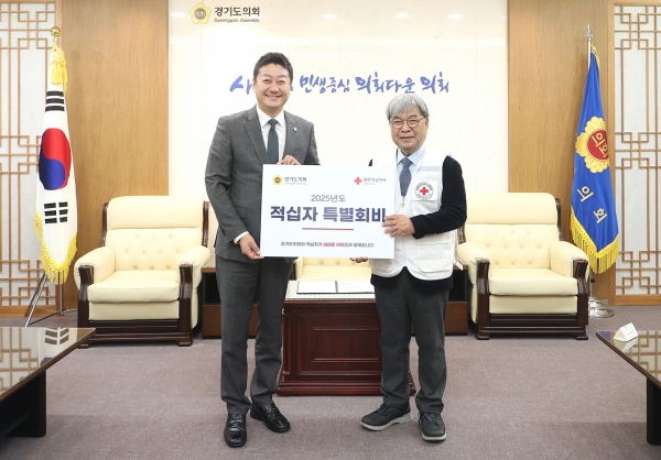 김 의장은 “따뜻한 마음과 나눔의 정신이 담긴 특별회비가 도내 어려운 이웃들에게 닿아 조금이나마 힘과 온기가 되었으면 한다”라며 “경기도의회는 앞으로도 적십자와 함께 더 따뜻하고, 희망찬 경기도를 만드는 길에 동행하겠다”라고 말했다.한편, 이번 특별회비 전달식은 1차 집중모금기간(’24.12.1.~’25.1.31.) 중 모금분위기를 확산하고자 실시됐다.전달된 특별회비는 경기도 내 재난구호 활동과 재난이재민 및 저소득층 지원, 봉사활동 및 보건 의료사업 등 지역사회의 복지 증진을 위한 다양한 사업에 활용된다.