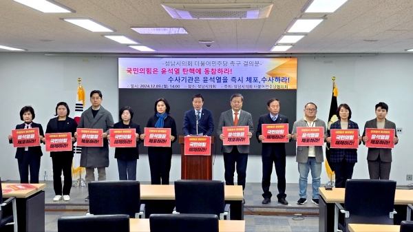 [광성일보] 성남시의회 더불어민주당협의회(대표의원 이준배)는 지난 12월 14일 국회에서 윤석열 대통령 탄핵소추안이 가결된 데 대해 “국민을 이기는 권력은 없다”며 헌법재판소에 신속하고 공정한 판결을 촉구했다.