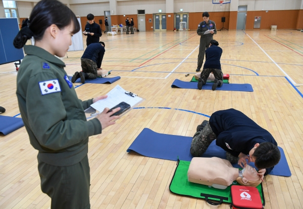 [광성일보] 공군 제15특수임무비행단(이하 ‘15비’)은 12월17일(화) 기지 내 체육관에서 항공의무대대 주관 서울기지 장병 및 군무원을 대상으로 ‘2024년 심폐소생술 경연대회’를 실시했다.