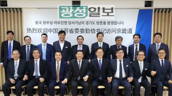 이재명 경기도지사가 29일 오전 도청 상황실에서 러우친젠(娄勤俭) 장쑤성(江蘇省) 당서기를 만나 양 지역 공동발전에 관한 의견을 교환하고 우호교류 관계 강화에 관한 합의서를 체결했다.
