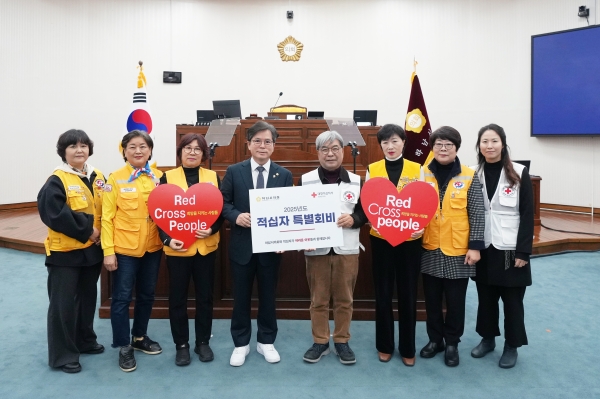 [광성일보] 하남시의회 금광연 의장은 19일 의회에서 ‘2025년 대한적십자사 특별회비 전달식’을 갖고, 이재정 대한적십자사 경기도지사 회장에게 특별회비 100만 원을 전달했다.이번 전달식은 ‘적십자회비와 함께 마음이 닿는 곳, 새로운 희망이 피어납니다’를 슬로건으로 이달 1일부터 시작된 ‘2025년 적십자회비 모금캠페인’에 동참해 우리 사회의 나눔 문화 확산과 하남시민들의 적극적인 참여를 독려하기 위해 마련됐다.이날 이재정 대한적십자사 경기도지사 회장, 박복년 제11대 대한적십자사봉사회 하남지구협의회 회장, 안동분 아동및청소년분과위원장, 안 열 총무부장, 최양순 홍보부장, 최민규 대한적십자사 경기도지사 중부봉사관 관장 등 관계자들이 참석했다.