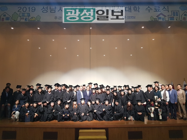 성남시(시장 은수미)는 5월 30일 가천대학교 예음홀에서 ‘2019. 제5기 행복도시재생 대학 수료식’을 개최했다. 시는 행복도시재생대학을 가천대학교에 위탁하여 지난 1월 도시재생에 관심이 있는 주민, 대학생, 마을 활동가 등을 대상으로 기초 5개반, 심화 1개반 등 총 6개반의 수강생을 모집하였다.