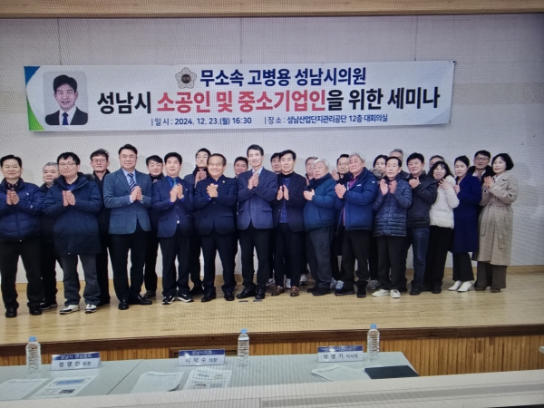 [광성일보] 성남시의회 무소속 고병용 의원은 2024년 12월 23일(월) 오후 4시 30분, 성남산업단지관리공단 12층 대회의실에서 ‘성남시 명장 선정 및 지원에 관한 조례’ 제정 방향과 중소기업인 지원을 위한 세미나를 성공적으로 개최했다.이날 세미나에는 성남시 시의원, 중소기업 및 소공인 대표자, 그리고 관련 전문가 등 약 70명이 참석하여 열띤 논의를 이어갔다.