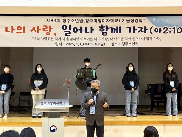[광성일보] 법무부 청주소년원(원장 황남례, 청주미평여자학교)은 2025년 겨울 방학을 맞이하여 1. 8.(수)~10.(금) 3일간 종교수련회를 개최한다. 청주 작은꿈나무교회(목사 이재환)에서 주관하고, 사랑하는교회, 복대교회, 인천 주안장로교회에서 후원하는 이번 종교수련회는 예배 및 성경말씀, 신문만들기, 소망나무 만들기, 나의 미래 이력서 만들기, 학생들과의 레크리에이션 등의 종교활동과 다양한 심성순화 프로그램으로 이루어진다.
