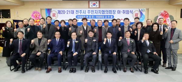 [광성일보] 전주시는 10일 시청 4층 대회의실에서 우범기 전주시장과 35개 동 주민자치위원장 등이 참석한 가운데 주민자치협의회장 이·취임식을 개최했다. 이날 이·취임식에서는 제20대 현창호 회장(삼천1동)이 이임하고, 제21대 강민철 회장(호성동)이 취임했으며, 새롭게 구성된 주민자치 활성화를 위한 활동에 나서게 될 제21대 임원진에게 위촉장을 수여했다.