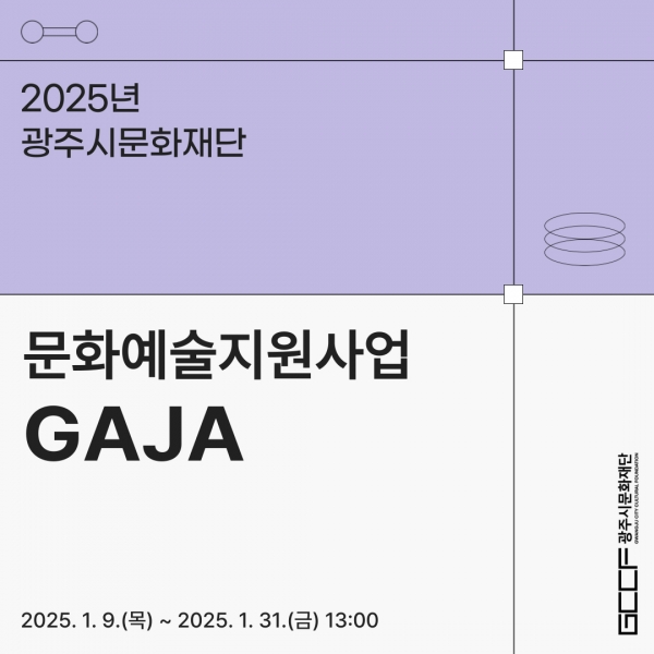 한편, 광주시문화재단은 지원 신청자의 사업에 대한 이해도를 높이기 위해 오는 20일 「2025년 문화예술지원사업 GAJA」 사업설명회를 추진할 예정이며, 같은 날 「경기예술활동지원 <모든예술 31 광주>」, 「시민과 예술가가 함께 누리는 문화예술」 사업설명회도 함께 진행할 예정이다. 지원신청은 광주시문화재단 홈페이지(www.nsart.or.kr) 내 고시공고 게시판에서 공모 요강을 확인하고 분야별 해당하는 지원신청서 양식을 내려받아 작성한 뒤 공고문 내 담당자 이메일을 통해 온라인으로만 제출(접수) 가능하다.