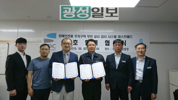 성남도시개발공사(사장 윤정수)는 6월 3일 오후 2시 탄천종합운동장 사무실 에서 송영규 탄천종합운동장 소장과 김은규 알고씽 사장이 참석한 가운데 『장애인 전용 주차구역 무인 상시 감시시스템 테스트베드(시범 서비스 사업)』 업무협약을 체결했다.