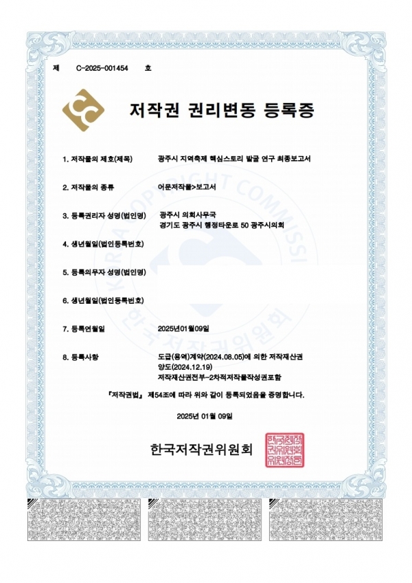 [광성일보] 광주시 축제발전 연구회」(대표 의원 이주훈)에서 전국 지방의회 최초로 축제 핵심스토리를 자체 개발해 지난 9일 저작권 등록을 마쳐 이목이 집중되고 있다.