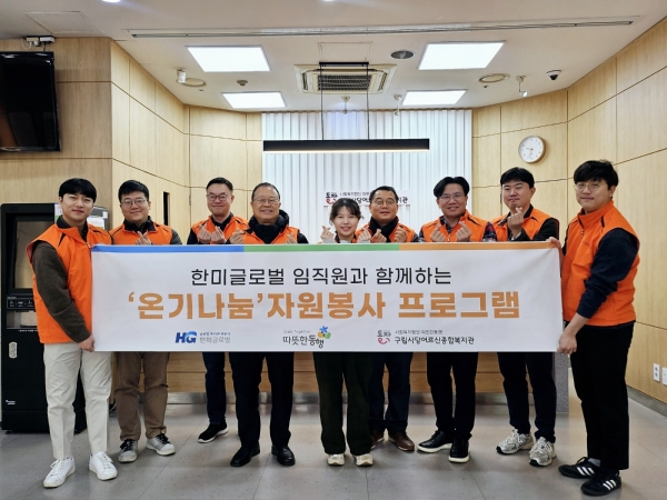 [광성일보] 사회복지법인 따뜻한동행 사당어르신종합복지관(관장 조희정)은 1월 18일(토), 한미글로벌 임직원들과 함께 취약어르신 결식예방 및 말벗활동 자원봉사를 진행하였다.이날 자원봉사 활동은 10명의 한미글로벌 임직원이 함께하였으며, 5명의 어르신에게 설맞이 세배인사, 덕담나누기와 함께 식료품을 전달하였다.자원봉사에 참여한 이O훈 임직원은 “어르신께 필요한 물품을 지원하고, 같이 대화하면서 온기를 나눌 수 있는 자원봉사였습니다.” 라는 소감을 밝혔다.