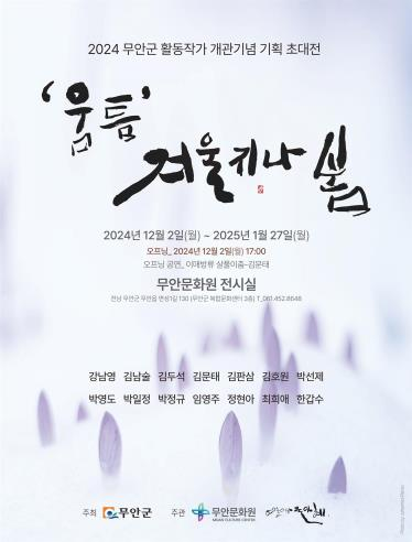 [광성일보] 무안문화원은 문화지소 사업의 일환으로 추진 중인 무안군에서 활동하는 작가들이 모여 <‘움틈’ 겨울지나 봄>을 25년 1월 27일(월)까지 무안문화원 전시실에서 개최된다.
