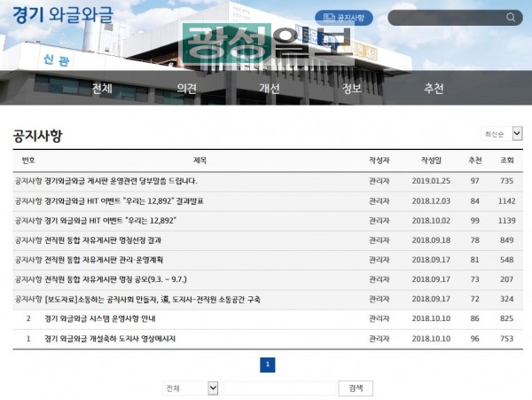 경기도청 전 직원들의 소통을 위해 마련된 통합게시판인 ‘경기 와글와글’이 도청 내 새로운 직장문화를 이끌어 내는 등 소통창구로서의 역할을 톡톡히 하고 있어 화제다.