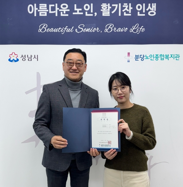 위촉장을 전달한 분당노인종합복지관의 이정우 관장은 “급속한 고령사회 속 1인 노인가구의 증가와 핵가족화에 따라 심리적 지지체계가 부족한 어르신들이 많아지고 있는데 복지관에 방문한 모든 어르신들의 마음이 웃는 그날까지 함께 해주시기를 바란다”는 말을 전했다.■ 한편, 분당노인종합복지관은 성남시에서 설립하고 지구촌사회복지재단에서 운영하는 노인복지시설로서, 성남시 노인복지증진을 위하여 평생교육, 사회참여, 지역복지 등의 전문 사회복지서비스를 제공하고 있다.