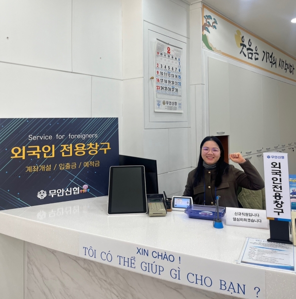 [광성일보] 무안신협(이사장 전양태)은 다문화 사회에 발맞춰 외국인 고객 전담 창구인 글로벌 데스크를 추가 설치하고 2025년 2월 3일부터 영업을 개시하고 있다.무안 본점 영업점에 외국인 전용(베트남특화) 창구 베트남 출신의 다문화가정 직원이 신설된 외국인 고객전담 창구에 배치되어 언어와 문화적 장벽을 낮추어 은행업무와 고객 맞춤형 금융 서비스 등의 직간접적인 혜택을 제공할수 있도록 하고 있고 외국인 전용 적금과 대출 상품 또한 개발중으로 조만간 출시 예정 이라고 밝혔다