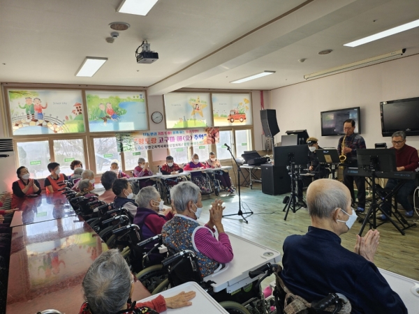 이번 프로그램은 무안군 해야농장에서 고구마를 후원하고 어설픈밴드공연단의 재능기부를 통해 진행됐으며, 협의체위원 등 30여 명이 참여해 어르신들께 추억의 여행을 선물했다.공연을 함께 한 어르신은 “나이가 들고 질병으로 무료했지만, 젊은 시절 함께 한 노래를 부르며 즐거운 추억의 시간을 보냈다”며 감사함을 전했다.