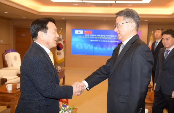강 시장은 먼저 지난해 12·29 제주항공 여객기 참사에 옌청시와 총영사가 희생자들을 추모하고 유가족과 시민을 위로해 준 것에 대해 감사를 표했다.강 시장은 이어 “광주는 대한민국에서 유일하게 현대차와 기아차 생산기지를 모두 가진 자동차 도시이며, 인공지능과 미래차를 중심으로 미래산업을 전략적으로 설계하고 있다”면서 “옌청시 역시 자동차‧에너지 등에 강점이 있는 도시로, 앞으로 산업 발전과 기업 지원을 위한 협력이 기대된다”고 말했다.저우빈 당서기는 “지난해 광주시의 한중일지방정부교류회 성공 개최를 축하드린다”며 “옌청시에서도 부시장 등이 참석해 광주의 우수정책을 배우고, 다양한 도시들과 교류할 수 있는 좋은 경험이 됐다”고 말했다.