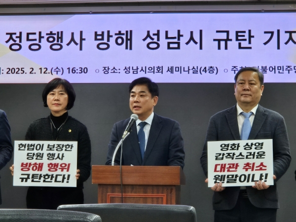 대관 허가 후 돌연 취소… “외부 압력 작용했나”민주당 측에 따르면, 이번 행사는 ‘당원과 함께하는 영화 관람 행사’로, 성남시 공공시설 대관 규정에 맞춰 진행됐다고 설명했다. 1월 24일, 정자청소년수련관에 대관 가능 여부를 문의한 뒤 대관을 신청했고, 이후 수련관 측의 안내에 따라 공연자 안전교육을 이수하는 등 필요 절차를 모두 이행했다는 것이다. 그러나 행사를 불과 6일 앞둔 2월 10일, 정자청소년수련관 측은 갑작스럽게 대관 불가를 통보했다. 수련관 측은 ‘대관 승인 전 홍보 진행’, ‘영리 목적 유권 해석 가능성’ 등을 이유로 들었지만, 민주당 측은 “기존 규정과 맞지 않는 억지 논리”라며 강하게 반발하고 있다.