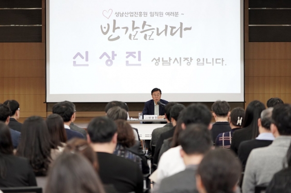 이날 성남산업진흥원 업무보고회에서 신 시장은 “우리 성남시가 4차 산업 선도도시로 자리매김할 수 있도록 핵심적 역할을 해주고 있는 진흥원 임직원들의 노고에 감사한다”며 격려했다.2025년 주요사업계획 보고를 받은 신 시장은 “성남산업진흥원이 지역 기업들의 경쟁력을 높이고 세계 각국과의 협력을 넓혀 성남이 세계 속 혁신도시로 성장하는 데 중요한 역할을 해주길 바란다”고 강조했다.