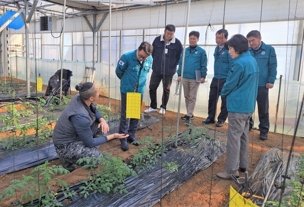 [광성일보] 광주시와 경기도농업기술원은 지난 18일 관내 친환경 토마토 농가를 방문해 토마토뿔나방 예방 및 방제 방안을 논의하고 농가 의견을 청취하는 자리를 가졌다.토마토뿔나방은 외래 병해충으로 토마토의 잎, 줄기, 열매를 갉아 먹어 수확량을 감소시키고 품질을 저하시킨다. 친환경농업을 실천하는 농가들은 더욱 큰 피해가 우려되는 상황으로 주기적인 예찰과 재배 초기부터 교미교란제 및 유기농업 자재를 병행한 철저한 방제가 필요하다.