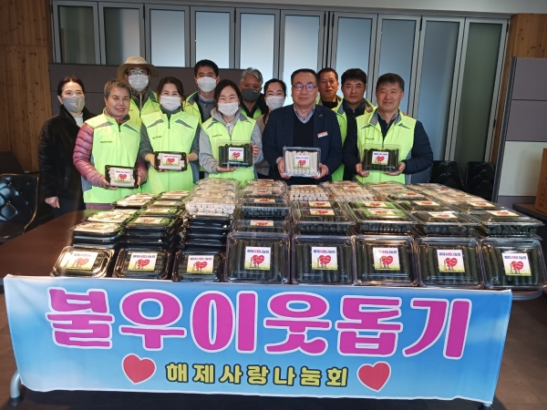 박성서 해제면장은 “항상 지역 주민들의 복지향상을 위해 자발적으로 따뜻한 나눔을 실천해 주신 사랑나눔회 회원분들께 감사드린다”며 “앞으로 나눔이 넘치는 따뜻한 지역사회를 만들기 위해 더욱 힘쓰겠다”고 말했다.한편, 해제사랑나눔회는 매년 마을경로당 위문, 저소득층 주거환경개선, 난방비 지원, 물품 후원 등 다양한 봉사활동을 펼치고 있다.
