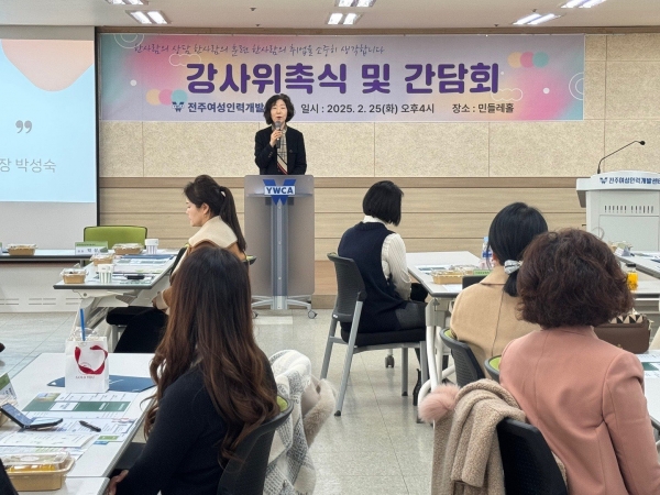 박성숙 전주여성인력개발센터 관장은 “이번 강사 위촉을 통해 여성 직업훈련의 질적 성장을 도모하고, 수강생들의 성공적인 취업과 창업을 적극 지원할 것”이라며 “강사님들의 전문성과 헌신을 바탕으로 더욱 실용적이고 효과적인 교육이 이루어지길 기대한다”고 말했다. 한편 자세한 교육 일정과 프로그램은 센터 누리집(www.jjwoman.or.kr)을 참고하거나 전화(063-232-2346)로 문의하면 된다. 센터는 카카오톡이나 인스타그램에서 친구 추가를 하고 사무실에 제시하면 소정의 선물도 제공할 예정이다.
