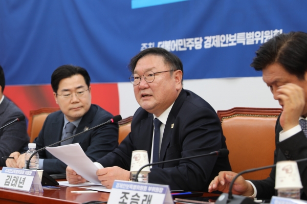 [광성일보] 더불어민주당 경제안보특별위원회(위원장 김태년)가 오늘(27일) 「민주당, 기업 손잡고 트럼프 통상 파고 넘는다」 간담회를 성황리에 마쳤다.이번 간담회는 지난주 미 워싱턴을 방문해 대미 통상 민간 아웃리치 활동을 마치고 온 주요 기업들의 글로벌 통상업무 총괄 임원들과 함께 트럼프 행정부의 통상정책이 국내 기업에 미치는 영향을 점검하고, 기업들의 애로사항을 청취하며, 더불어민주당 차원의 대응 방안을 논의하기 위해 마련됐다.행사에는 더불어민주당 박찬대 원내대표와 경제안보특별위원회 김태년 위원장을 비롯한 특위 위원들, 그리고 한국무역협회와 대한상공회의소, 삼성전자, SK하이닉스, 현대자동차, LG, 롯데지주, 포스코인터네셔널, 한화에어로스페이스 관계자들이 산업계를 대표해 참석했다.