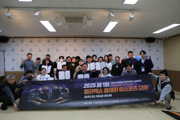 [광성일보] 오늘 28일(금), 성남시장애인종합복지관(한창경 관장)에서 열린 “2025 제1회 휠리엑스 플레이 이스포츠대회” 가 성황리에 종료됐다. 이번 대회는 성남시장애인종합복지관, 안양수리장애인종합복지관, 하남시장애인복지관의 지체장애인, 지적장애인, 비장애인 선수들이 참가한 가운데, (주)캥스터즈가 주최하고 주관했다. 대회에는 각 복지관별로 남녀 8명의 선수가 참가하여, 휠체어를 이용한 휠리엑스 트레드밀 레이싱과 다양한 게임을 통해 근력과 인내심을 겨루는 종목에 참여했다. 대회는 총 5개 종목(휠체어레이싱 200m, 400m, 5km 계주, 도넛크러쉬, 로드바이크)으로 진행되었으며, 각 종목별 순위에 따라 포인트를 부여하여 종합우승을 겨루는 방식으로 펼쳐졌다.