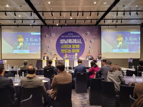[광성일보] 성남시정연구원이 지난 6일, 정책심포지엄과 제1회 국제학술세미나를 개최했다.이번 심포지엄은 성남특례시 지정 추진 전략을 논의하고, 판교테크노밸리의 성공 요인을 분석해 지속 가능한 성장 방안을 모색하기 위해 마련됐다.성남시는 2019년 특례시 지정을 추진했지만, 행정안전부의 제도 개선안에서 인구 기준 등의 제약으로 무산된 바 있다.신상진 성남시장은 인사말에서 “성남시는 산업 발전과 행정 수요가 꾸준히 증가하고 있다”며, 행정안전부의 획일적인 인구 기준 적용을 비판했다.1부 행사인‘2025년 정책심포지엄’에서는 성남특례시 추진 필요성과 제도 개선 방향을 논의했다.