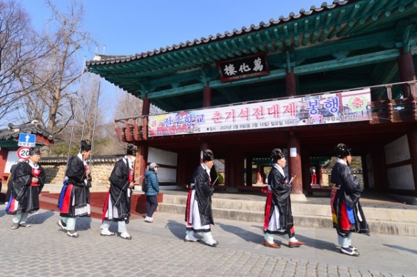 전주향교가 주관하고 전주시가 후원한 이번 대제는 헌관 및 제관 등 유림, 전주시민, 관광객들이 지켜보는 가운데 전통 예법에 따라 거행됐다.