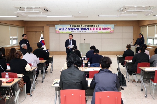 [광성일보] 전남 무안군(군수 김산)은 지난 13일 군청 회의실에서 평생학습 동아리 지원사업 공모 선정 18개 동아리를 대상으로 2025년 평생학습 동아리 지원사업 설명회를 개최했다.평생학습 동아리 지원사업은 관내에서 활동 중인 우수 평생학습 동아리에 운영비를 지원해 학습 동기를 부여하고 학습공동체 활성화를 도모하는 사업이다.