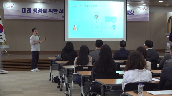 또한, AI 모델의 훈련 및 배포 과정에 대한 기술적 설명과 함께 2024년부터 2025년까지의 AI 업계 핵심 트렌드를 소개하며, “현재 첨단산업은 사람 중심에 AI가 보조하는 구조이나, 향후 AI가 중심이 되고 사람이 이를 보조하는 형태로 전환될 것”이라고 설명했다.현장에는 성남시청 유관 부서 관계자와 성남시정연구원 소속 연구진 등이 참석해 행정 현장에서의 AI 기술 도입 가능성과 응용 방안에 대한 심도 있는 질문, 답변을 이어갔다.성남시정연구원은 전문가, 연구진, 관계 공무원이 함께하는 지식 공유의 장인 콜로키움을 연중 지속해서 운영할 계획이다.