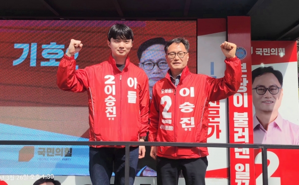 [광성일보] 성남시 제6선거구(서현1·2동, 판교동, 백현동, 운중동, 대장동) 경기도의회 의원 보궐선거에 출마한 국민의힘 이승진 후보의 선거운동에 특별한 인물인 그의 아들, 이동훈이 선거운동에 참여하여 지역 주민들의 마음을 울렸다. 그는 현재 천안의 한 초등학교에서 6학년 담임 교사로 재직 중이며, 공군 중위로 전역한 군 장교 출신으로 누구보다도 존경하는 아버지를 위해 서슴지 않고, 휴가를 내고 달려와 마이크를 잡았다.유세차 현장에서는 아들이 직접 연설자로 나섰는데‘부자의 정’과 ‘국가를 위한 헌신’의 메시지를 전해 감동을 안겨 주었다.