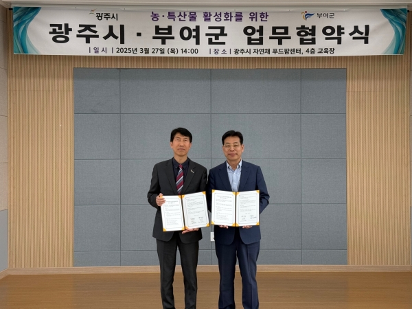 그동안 양 기관은 광주시 자연채 푸드팜센터에 부여군 농·특산물을 진열, 판매하기 위해 수 차례 사전 협의와 간담회 등을 진행하며 지속적인 협력관계를 구축해 왔다.