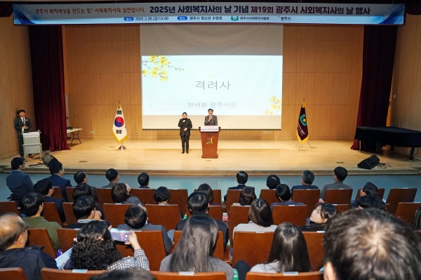 [광성일보] 광주시 사회복지사협회는 28일 광주시 청소년수련관에서 ‘제19회 광주시 사회복지사의 날’ 기념행사를 개최했다.이날 행사에는 사회복지 관련 관계자들을 비롯한 방세환 광주시장, 국회의원, 시·도의원 등 150여 명이 참석했으며 식전 공연을 시작으로 동원대학교 사회복지상담학과 학생들의 사회복지사 선서, 사회복지 분야 유공자 표창 및 지역경제 활성화 퍼포먼스 순으로 진행됐다.